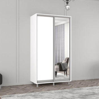 Aron-S uși glisante din oglindă și PAL (140x60x210H cm) Alb Brilliant