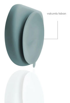 Он зафиксирован и не скользит. Основание тарелки работает как присоска, которая предотвращает опрокидывание или скольжение тарелки во время еды. Когда вы хотите отсоединить пластину, вам просто нужно поднять специальную отметку на основании.