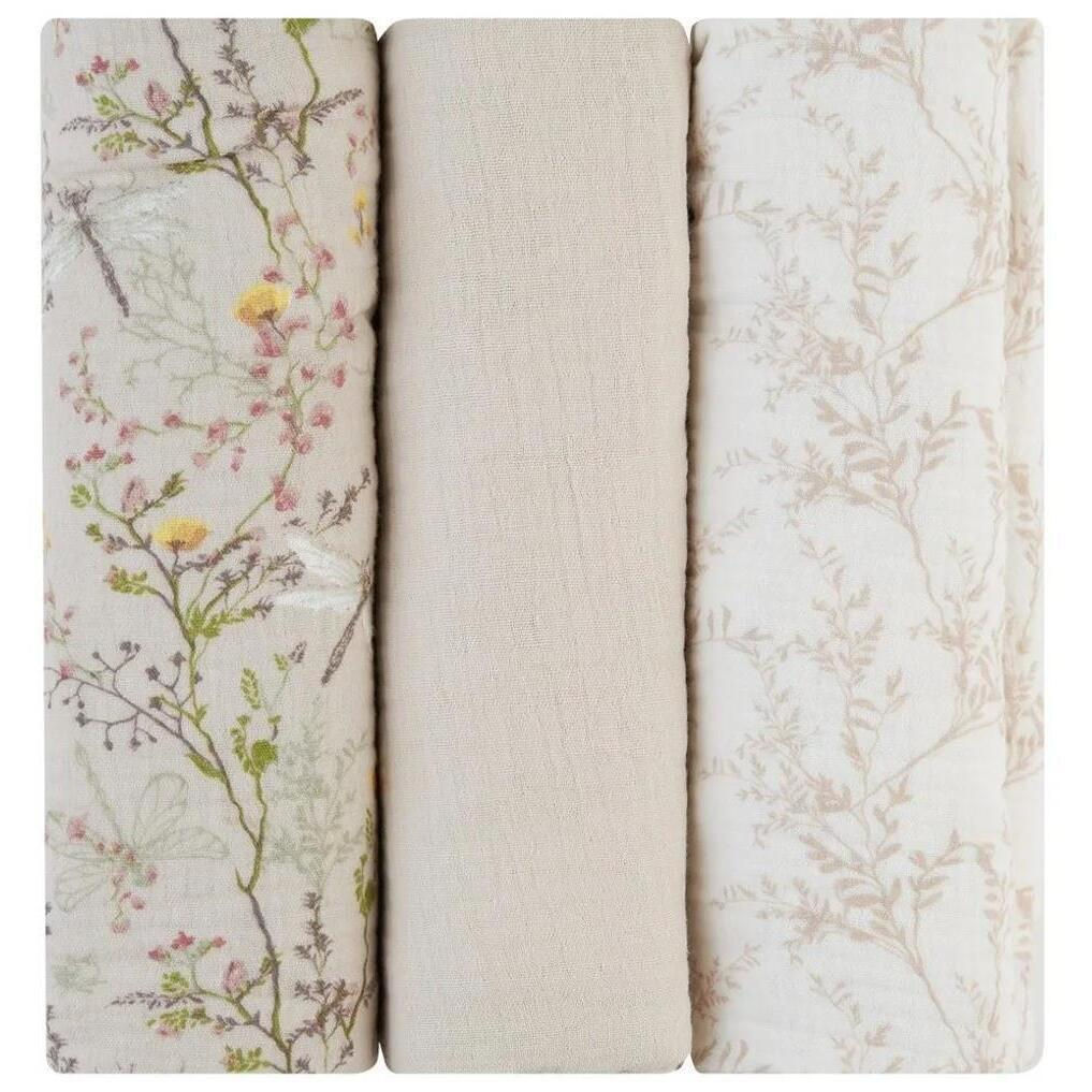 31103010108 Pelinci de muselina Secret Garden Beige, 100x100 cm, 3 buc.