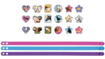 I Love Horses Набор для создания браслетов — увлекательный набор для создания 3 браслетов с 18 шармами на тему лошадей! В комплекте яркие подвески с изображением лошадей и других милых животных, которые можно добавить на браслеты. Отличный способ для детей создать уникальные аксессуары и выразить свою любовь к лошадям!