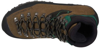 Манжета имеет три крючка для еще большей защиты щиколотки и устойчивости стопы. Прочный верх выполнен из цельной гидрофобной кожи толщиной 2,8 мм. Подкладка Gore Tex гарантирует водонепроницаемость и воздухопроницаемость ботинок, подошва Vibram Impact Brake System поглощает негативные удары о землю и хорошо работает как на спусках, так и на спусках.