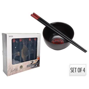 • Состав набора – 4 круглые миски и 4 пары бамбуковых палочек.
