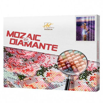 QB205201 Mozaic cu diamante patrate 40x50cm Fata intr-un camp de lavanda