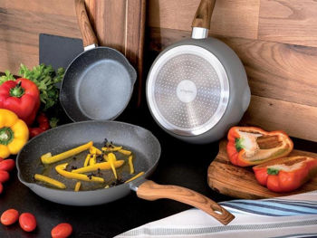 • ✅ Ручки: с покрытием soft touch, с эффектом дерева — не скользят и не нагреваются