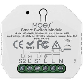 Модуль Moes Matter over Wi-Fi Mini Smart Switch Module 2 Gang 10A (MWM-104B-MS) создан для тех, кто ценит универсальность и стабильность. Поддержка стандарта Matter обеспечивает совместимость с популярными платформами, включая Apple Home, Google Home и Alexa, позволяя легко интегрировать устройство в любую умную экосистему.