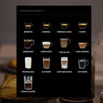 горячее молоко; капучино; кофе (американо); латте макиато; лунго; ристретто; флэт уайт; холодные напитки; чай (горячая вода); эспрессо;