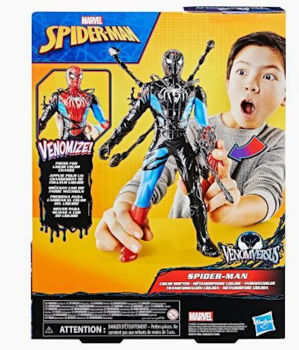 Представьте себе экшн и приключения, основанные на инопланетном симбиоте, с игрушками Marvel Spider-Man VenomVersus! Эта крутая фигурка Человека-паука Liquid Shifter имеет высоту 11 дюймов (27 см) и имеет дизайн костюма и декора Веномизированного Человека-паука, вдохновленные комиксами Marvel. Прикрепите 6 аксессуаров, вдохновленных Веномомом, к игрушке Спайди, чтобы начать трансформацию симбиота. Затем нажмите на руку фигурки, чтобы активировать функцию жидкого преобразования, и наблюдайте, как черная жидкость Веномизирует Человека-паука! После освобождения черная жидкость отступит, и фигурка снова превратится в Человека-паука.