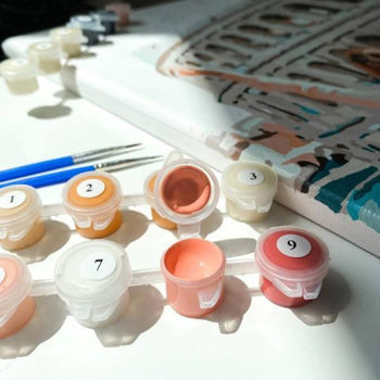 3 кисточки; акриловые краски; холст;