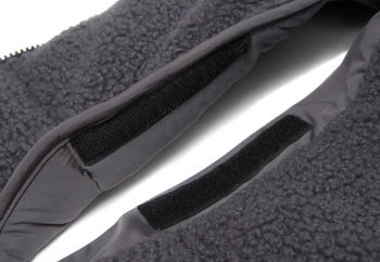 Разработанный как практичный и безопасный аксессуар, этот чехол совместим с ремнями безопасности в 3 и 5 точках и оснащён двойной молнией для быстрого доступа. Капюшон на задней стороне фиксируется на подголовнике коляски, обеспечивая устойчивость чехла во время прогулок. Кроме того, водонепроницаемый материал надёжно защищает от влаги.