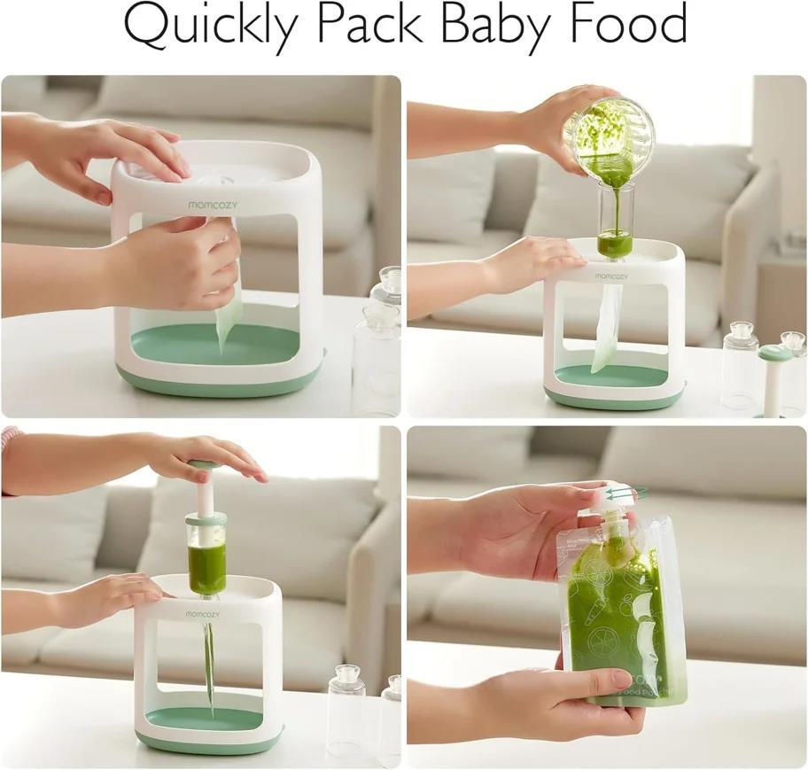 Разработанный для упрощения приготовления еды, аппарат Momcozy Food Maker — идеальный выбор для родителей, которые ценят быстрый, чистый и практичный процесс. Его компактный и функциональный дизайн позволяет легко наполнять многоразовые пакеты без лишней грязи и потерь.