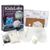 В наборе: шестиугольный контейнер с крышкой, неглубокий шестиугольный контейнер, подставка для светящегося кристалла, миска для смешивания, ложка, большой пакет с белым кристаллическим порошком, маленький пакет с синей смесью, набор хрустальной бумаги для снежного дерева и подробная инструкция.