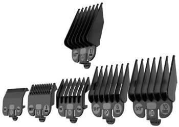 6 гребней, USB шнур, щеточка, масло, база для зарядки, отвертка, 2 сменные панели корпуса, защита лезвия, лезвие STD