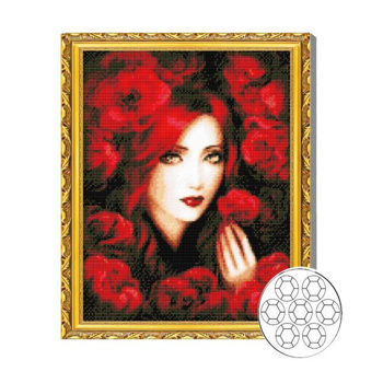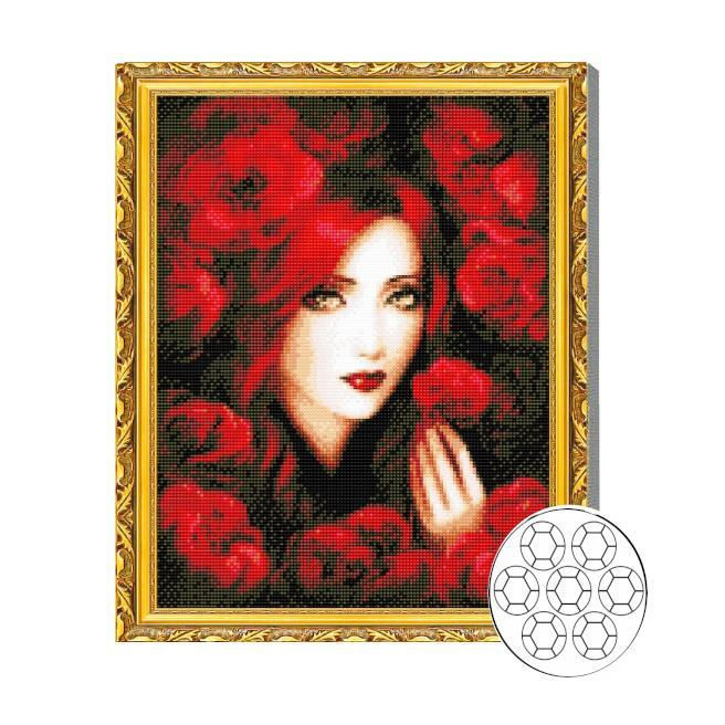 GA79956 Mozaic cu diamante 40x50cm Fata printre flori rosii