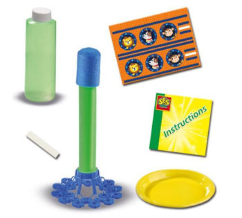 Ракета-пузырь из SES — это так весело! Эта ракета выпускает за собой шлейф пузырей, когда вы ее бросаете. А с мыльным раствором от SES у вас будут самые крепкие пузыри. Соберите ракету и наклейте на нее наклейки с тремя космонавтами. Готов к взлету?