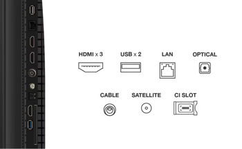 CI Slot; HDMI; jack 3,5 mm; LAN (Ethernet); S/PDIF; USB;