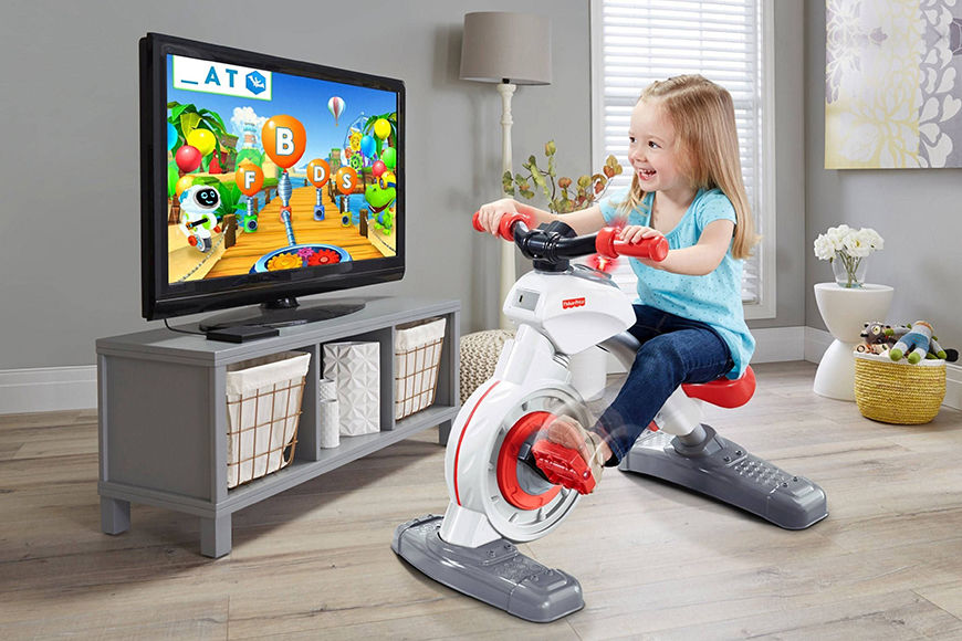 Mai exact, o bicicletă de folosit în casă, care nu se deplasează, dar are un ecran de tabletă unde cei mici se pot bucura de aplicaţii şi joculeţe educative – concesie făcută păărinţilor care vor sa până la 142 de euro pe jucărie.